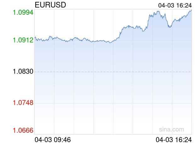 新浪外汇消息2025年04月03日,截至16时24分,外汇市场上欧元兑美元汇率突破1欧元兑换1.0994美元。涨幅为1.5143%