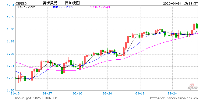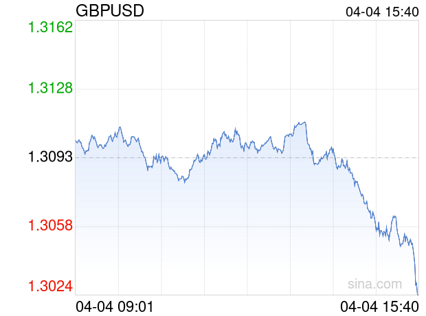04月04日 英镑兑美元跌破1.3025 折算100英镑汇率兑950.0100人民币