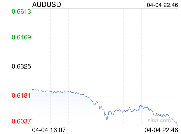 新浪外汇消息2025年04月04日,截至22时45分,外汇市场上澳元兑美元汇率跌破1澳元兑换0.6038美元。跌幅为-4.5342%