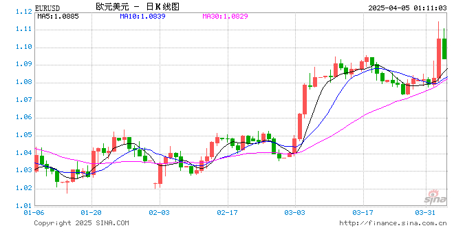 新浪外汇消息2025年04月05日,截至01时10分,外汇市场上欧元兑美元汇率跌破1欧元兑换1.0937美元。跌幅为-1.0244%