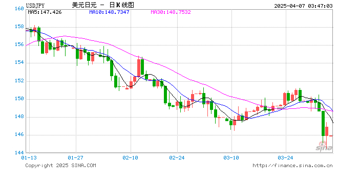 新浪外汇消息2025年04月07日,截至03时46分,外汇市场上美元兑日元汇率跌破1美元兑换145.9450日元。跌幅为-0.6738%