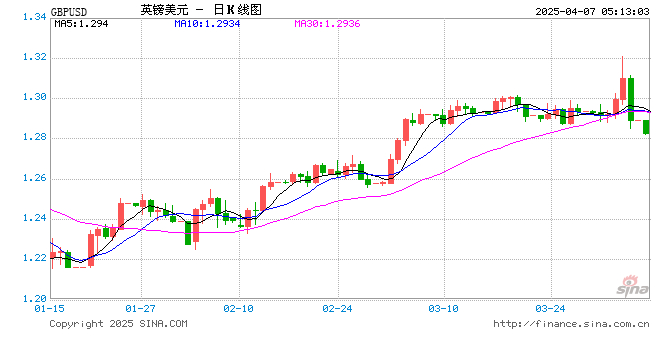新浪外汇消息2025年04月07日,截至05时12分,外汇市场上英镑兑美元汇率跌破1英镑兑换1.2825美元。跌幅为-0.5143%