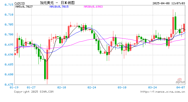 新浪外汇消息2025年04月08日,截至12时06分,外汇市场上加元兑美元汇率突破1加元兑换0.7056美元。涨幅为0.5157%