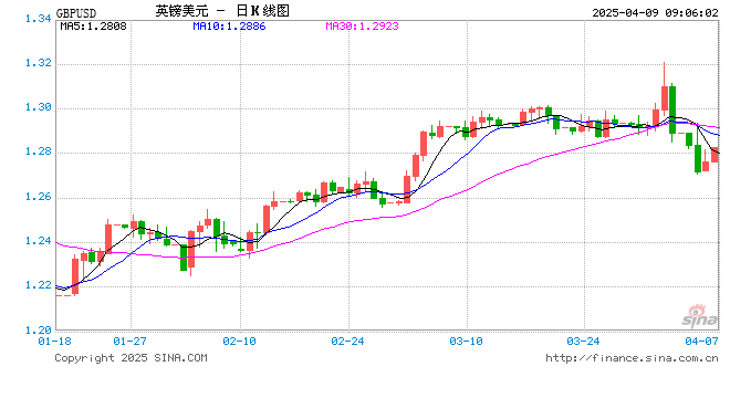 04月09日 英镑兑美元突破1.2828 折算100英镑汇率兑937.7200人民币