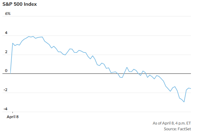 一场盘初看上去可能上演的史诗级反弹,在最后依然遭遇了历史性的溃败,市场也延续了由特朗普总统全面关税措施引发的惨烈抛售——这波跌势目前已持续了整整四个交易日,标普500指数在此期间累计下跌了12.14%,道指下挫了10.85%,纳斯达克指数重挫了13.26%。