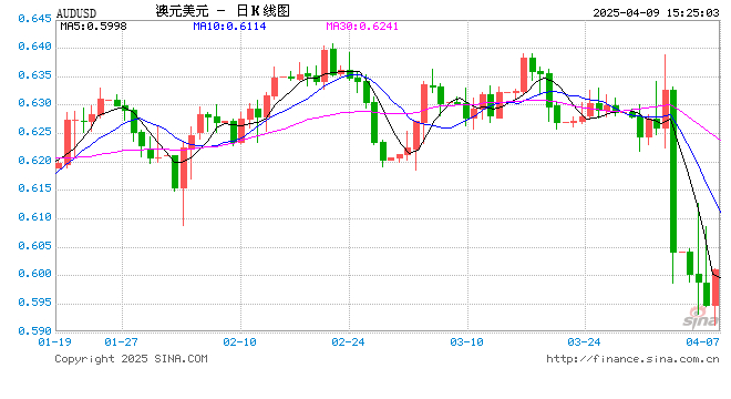 新浪外汇消息2025年04月09日,截至15时24分,外汇市场上澳元兑美元汇率突破1澳元兑换0.6011美元。涨幅为1.0319%