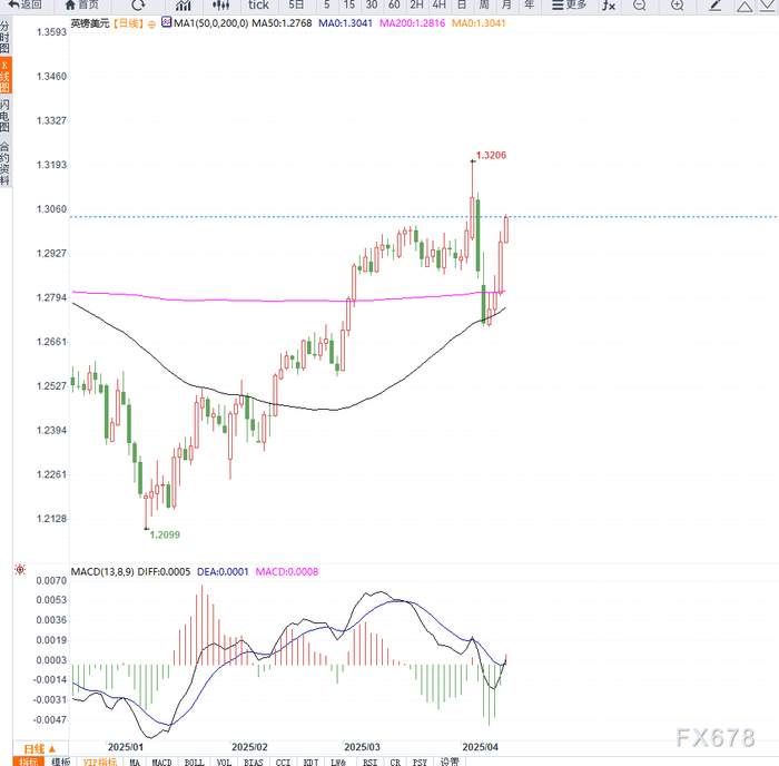 技术面显示,GBP/USD突破1.3000关口后打开进一步上涨空间,短期阻力位看向1.3100。若美元继续承压,英镑或将延续升势。