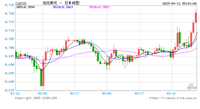 新浪外汇消息2025年04月12日,截至05时00分,外汇市场上加元兑美元汇率突破1加元兑换0.7207美元。涨幅为0.8113%