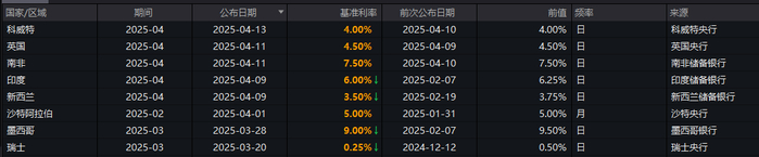 而在美国,在美债收益率直线攀升、美元走弱以及受美国贸易政策影响的股市暴跌的背景下,投资者将从美联储政策制定者那里寻求有关其降息意愿的线索。美联储主席鲍威尔将于周三在芝加哥经济俱乐部发表演讲,阐述他对经济的评估。同一天,地区联储主席施密德和洛根也将讨论经济和银行业问题。
