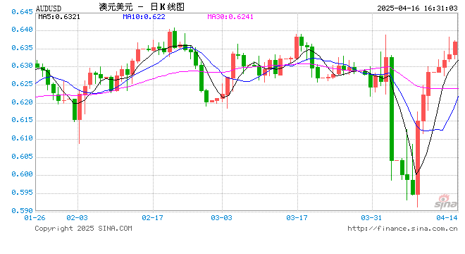 新浪外汇消息2025年04月16日,截至16时30分,外汇市场上澳元兑美元汇率突破1澳元兑换0.6371美元。涨幅为0.5492%