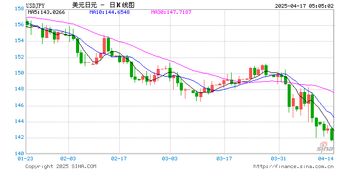 新浪外汇消息2025年04月17日,截至05时04分,外汇市场上美元兑日元汇率跌破1美元兑换141.7630日元。跌幅为-1.0076%