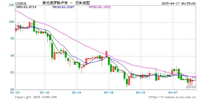 04月17日 美元兑俄罗斯卢布突破83.7260 折算100俄罗斯卢布汇率兑8.6730人民币