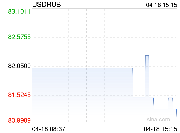 04月18日 美元兑俄罗斯卢布跌破81.0800 折算100俄罗斯卢布汇率兑8.9260人民币