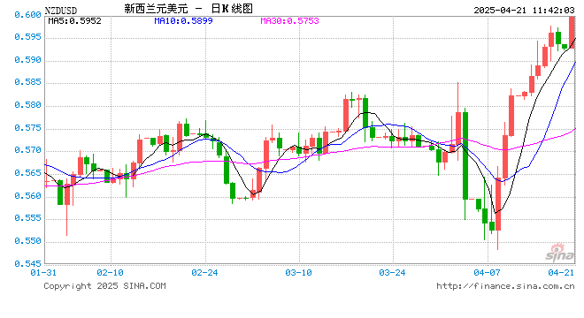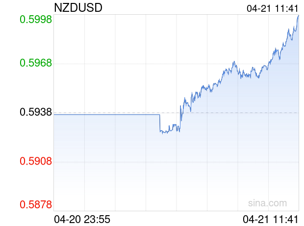 新浪外汇消息2025年04月21日,截至11时41分,外汇市场上新西兰元兑美元汇率突破1新西兰元兑换0.5998美元。涨幅为1.0138%