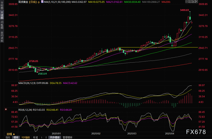 与此同时,现货金今年迄今已上涨 29%,周二创下第 28 个历史新高,首次触及3500 美元大关。短线大涨后,多头也存在获利了结和回调需求。
