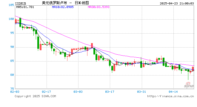 04月23日 美元兑俄罗斯卢布突破83.1010 折算100俄罗斯卢布汇率兑8.7400人民币