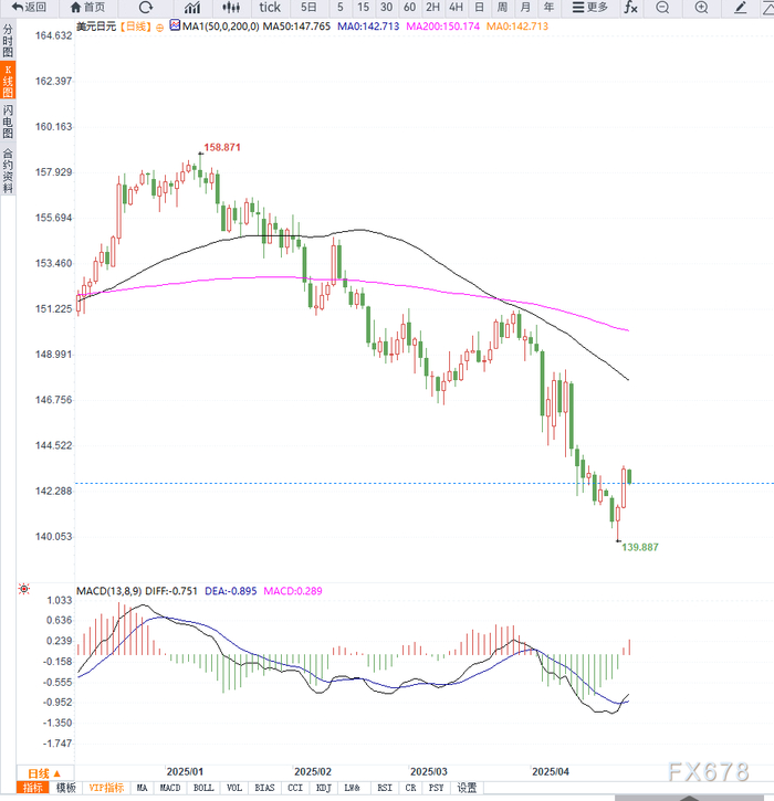 技术面支撑日元走势,美元兑日元短期阻力明显从技术面来看,虽然美元兑日元一度突破143.00及3-4月跌幅的23.6%斐波那契回撤位,但上涨动能有限。