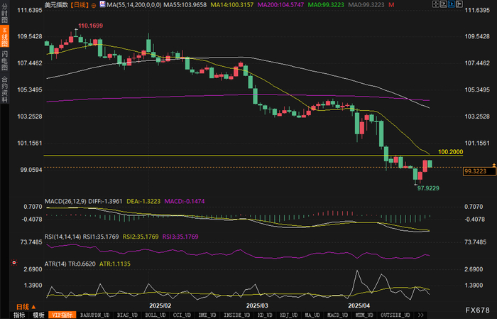 汇通财经APP讯——周四(4月24日)北美时段,美元指数下跌,交投于99.50下方,跌幅逾0.50%,主要受到美国总统特朗普和财政部长贝塞特关于全球关税谈判的最新言论影响。与此同时,美国耐用品订单数据呈现分化现象,市场对美联储降息预期再起波澜。