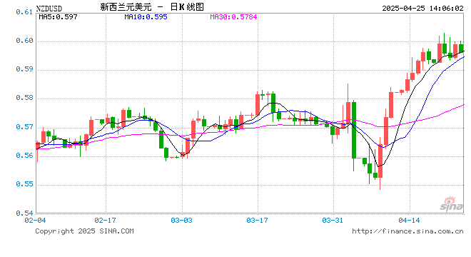 04月25日 新西兰元兑美元跌破0.5963 折算100新西兰元汇率兑434.3000人民币