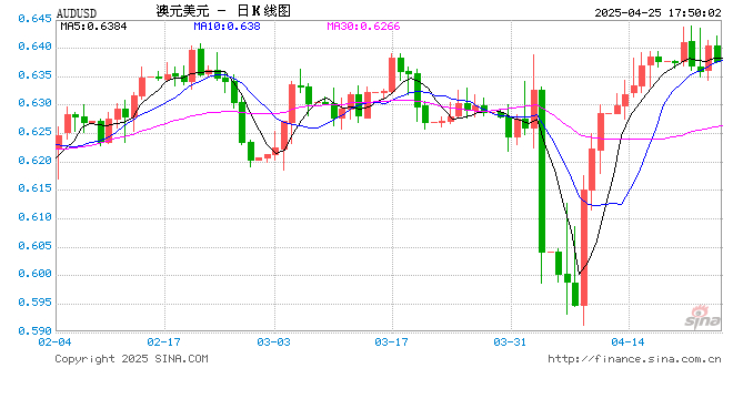 04月25日 澳元兑美元跌破0.6376 折算100澳元汇率兑464.6500人民币