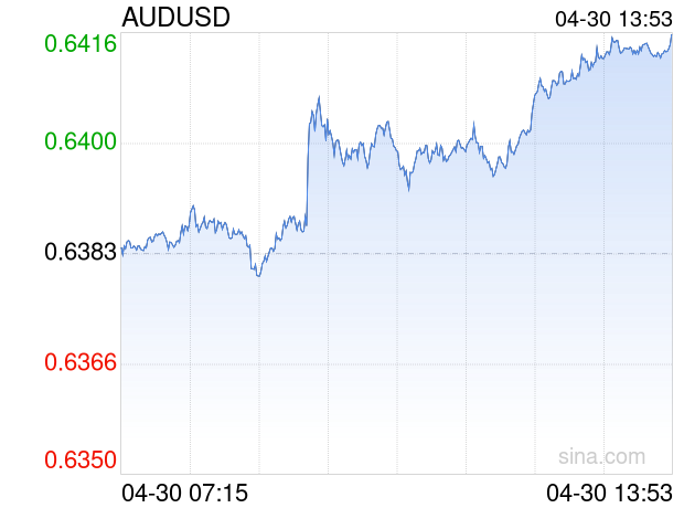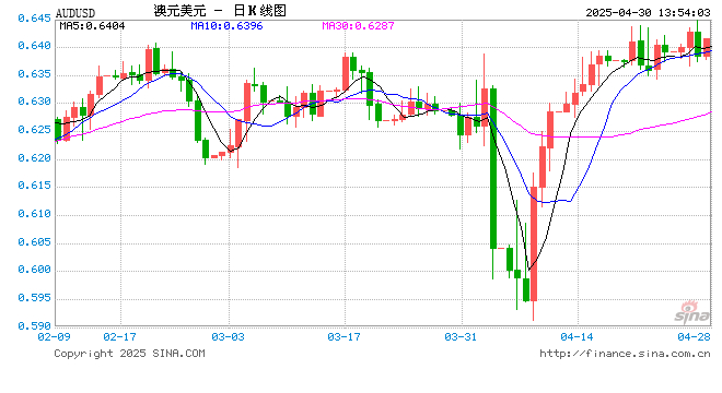新浪外汇消息2025年04月30日,截至13时53分,外汇市场上澳元兑美元汇率突破1澳元兑换0.6416美元。涨幅为0.5091%