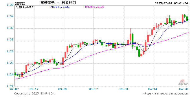 05月01日 英镑兑美元跌破1.3329 折算100英镑汇率兑968.7300人民币