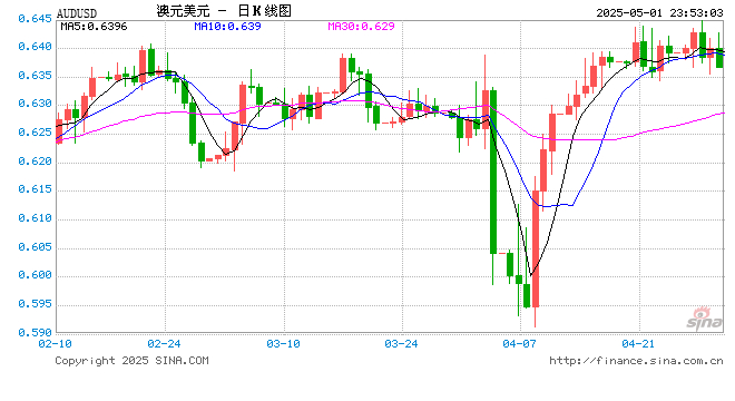 05月01日 澳元兑美元跌破0.6368 折算100澳元汇率兑464.2000人民币