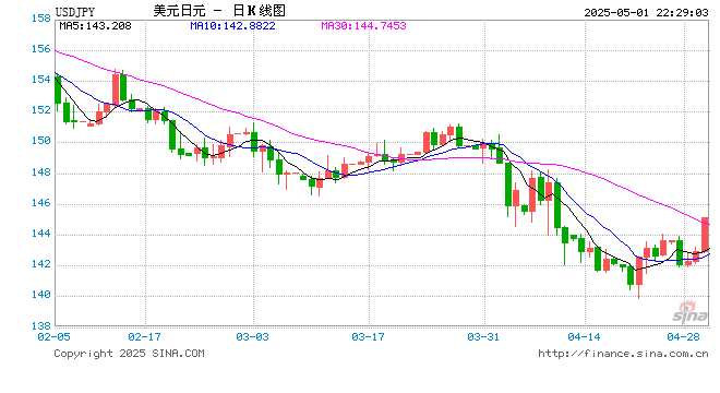 新浪外汇消息2025年05月01日,截至22时28分,外汇市场上美元兑日元汇率突破1美元兑换145.1430日元。涨幅为1.5022%