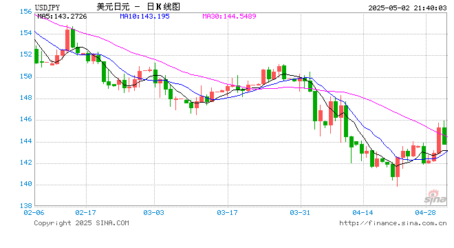 新浪外汇消息2025年05月02日,截至21时39分,外汇市场上美元兑日元汇率跌破1美元兑换143.8100日元。跌幅为-1.0105%