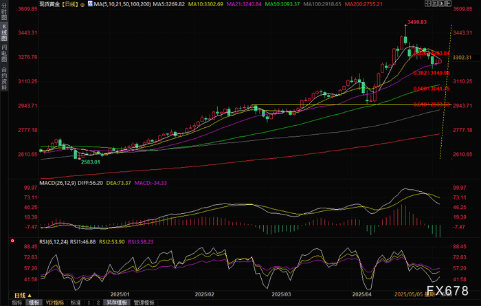 现货黄金日线图,来源:易汇通)北京时间09:39,现货黄金现报3265.43美元/盎司。