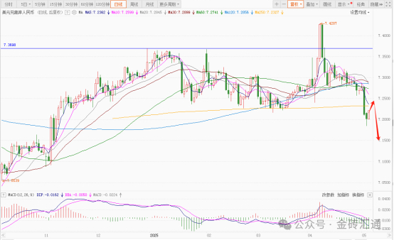 美元对人民币的离岸价经过多次震荡运行,从前期低点6.9651开始再次震荡上涨,目前突破并运行在在MA250均线上方;价格并在4月8日创出7.4287的新高后,出现明显承压回落走势,日内短线行情则建议看空震荡回落的走势。