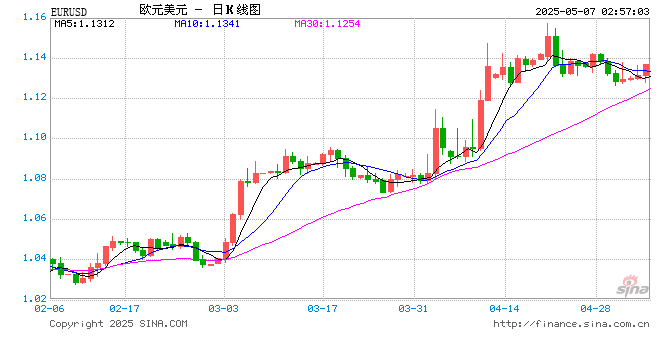 新浪外汇消息2025年05月07日,截至02时56分,外汇市场上欧元兑美元汇率突破1欧元兑换1.1373美元。涨幅为0.5215%