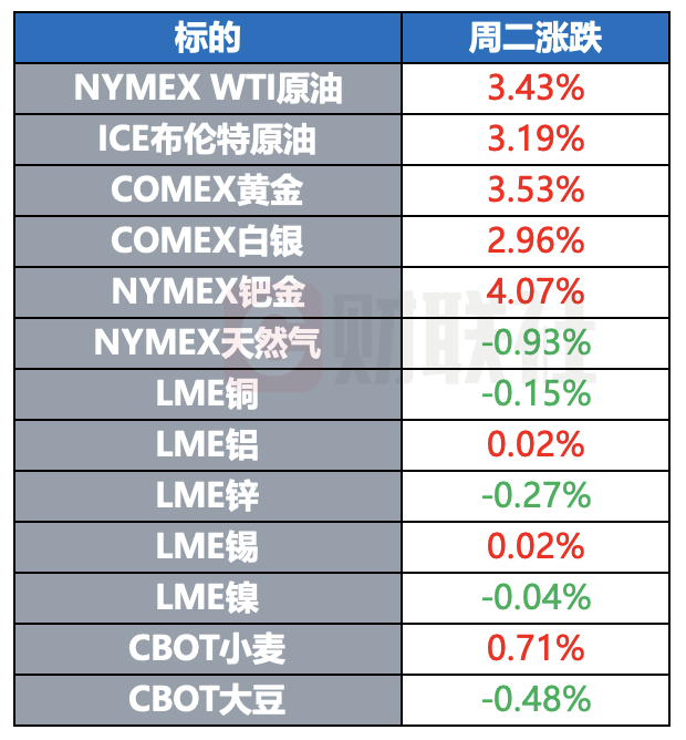 COMEX黄金期货收涨3.53%,刷新日高至3440美元/盎司;COMEX白银期货涨2.96%,报33.435美元/盎司。