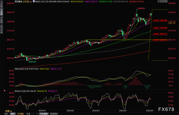美元指数周二收盘下跌0.54%,收报99.26,这给金价提供支撑。因担心美国总统特朗普鼓吹的贸易协议尚未达成,而欧元则在德国议会选举保守派领导人默茨(Friedrich Merz)为总理后扩大涨幅。美元指数4月份单月跌幅达4.3%,为两年多来最大。