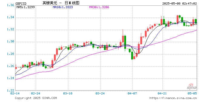 05月08日 英镑兑美元跌破1.3305 折算100英镑汇率兑964.2600人民币