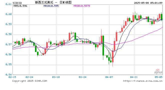 05月08日 新西兰元兑美元跌破0.5946 折算100新西兰元汇率兑428.7000人民币