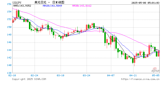 新浪外汇消息2025年05月08日,截至05时00分,外汇市场上美元兑日元汇率突破1美元兑换143.7640日元。涨幅为0.9238%