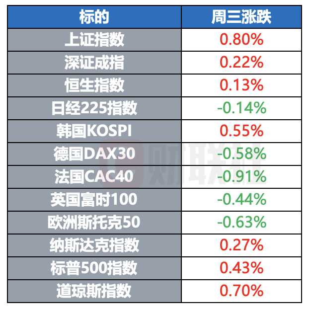 全球主要指数周三涨跌互现,美股三大指数震荡收高。