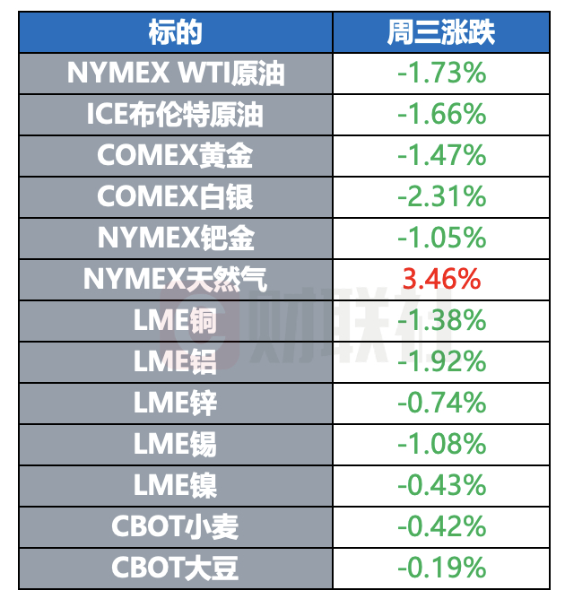 国际贵金属期货普遍收跌,COMEX黄金期货跌1.47%,报3372.60美元/盎司,COMEX白银期货跌2.31%,报32.61美元/盎司。