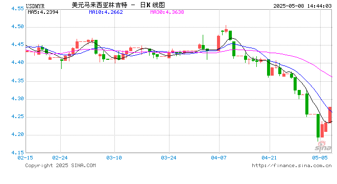 05月08日 美元兑马来西亚林吉特突破4.2790 折算100马来西亚林吉特汇率兑169.0400人民币