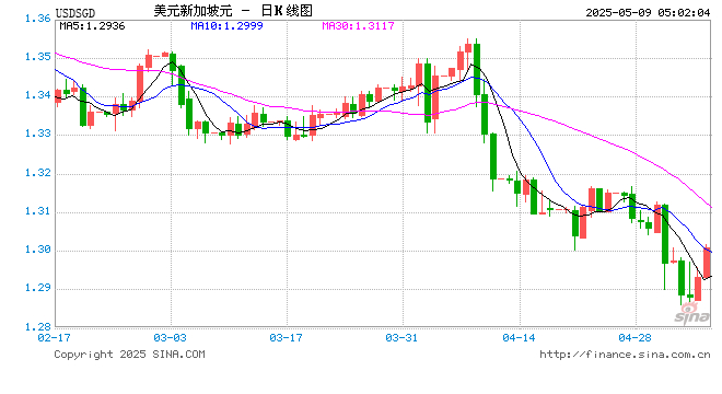 新浪外汇消息2025年05月09日,截至05时01分,外汇市场上美元兑新加坡元汇率突破1美元兑换1.3010新加坡元。涨幅为0.5184%