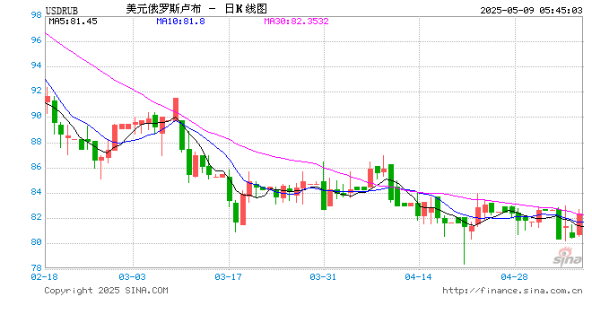 05月09日 美元兑俄罗斯卢布突破82.3750 折算100俄罗斯卢布汇率兑8.7290人民币