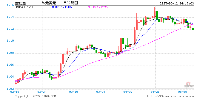 新浪外汇消息2025年05月12日,截至04时16分,外汇市场上欧元兑美元汇率跌破1欧元兑换1.1188美元。跌幅为-0.5157%