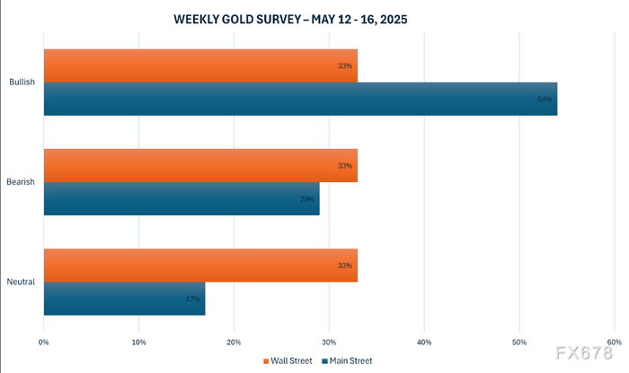 与此同时,Kitco的在线投票中投出了267票,主街(Main Street)维持了上周的多数看涨情绪。144名零售交易者,即54%,预计未来一周会上涨,另有77名,即29%,预计黄金价格会下跌。剩余46名投资者,即总投票者的17%,认为未来一周黄金价格会震荡。