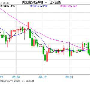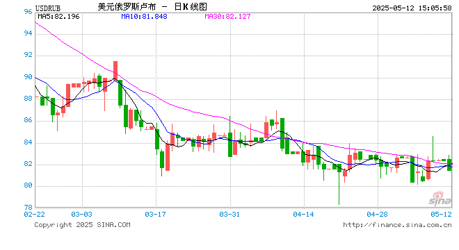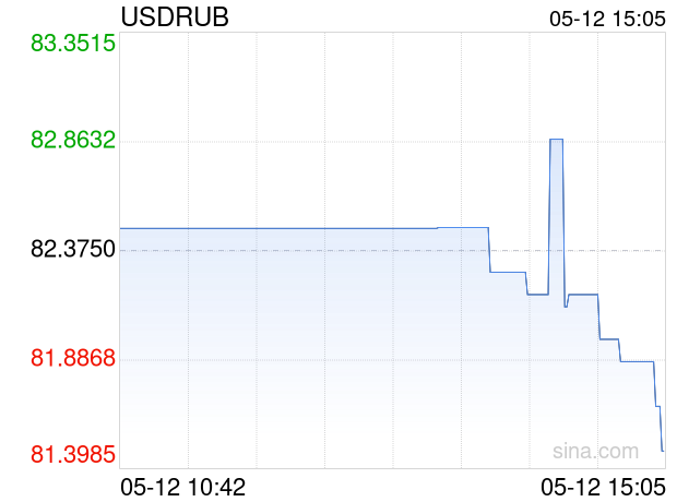 05月12日 美元兑俄罗斯卢布跌破81.4800 折算100俄罗斯卢布汇率兑8.7850人民币
