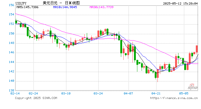 新浪外汇消息2025年05月12日,截至15时27分,外汇市场上美元兑日元汇率突破1美元兑换147.5320日元。涨幅为1.5201%