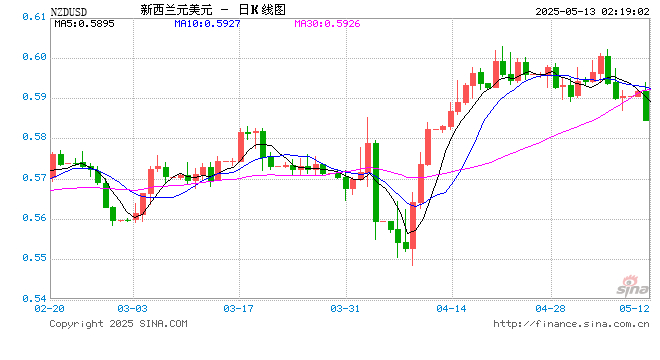 05月13日 新西兰元兑美元跌破0.5847 折算100新西兰元汇率兑420.8000人民币