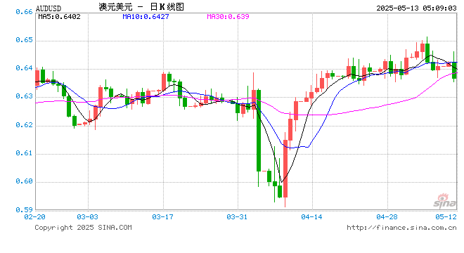 05月13日 澳元兑美元跌破0.6367 折算100澳元汇率兑457.9900人民币