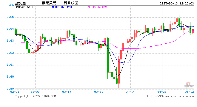 新浪外汇消息2025年05月13日,截至12时24分,外汇市场上澳元兑美元汇率突破1澳元兑换0.6402美元。涨幅为0.5008%