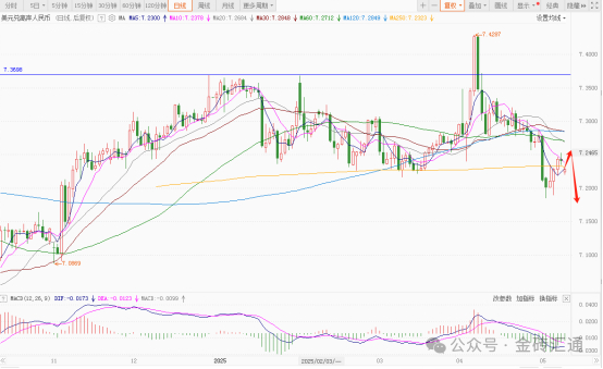 美元对人民币的离岸价经过多次震荡运行,从前期低点6.9651开始再次震荡上涨,目前突破并运行在在MA250均线上方;价格并在4月8日创出7.4287的新高后,出现明显承压回落走势,日内短线行情则建议看空震荡回落的走势。